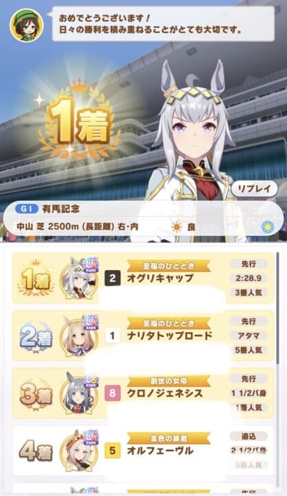 タニノギムレット、カレンチャン、ナカヤマフェスタ、エスポワールシチーと同じだったりする